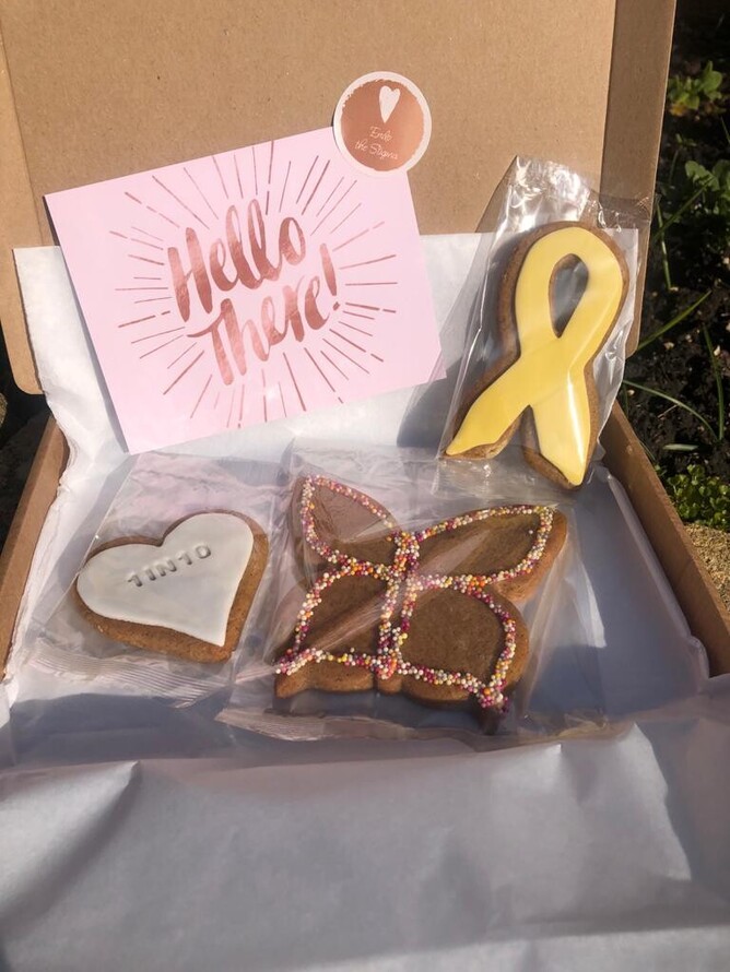 I was asked a couple of weeks ago by a customer/friend, to help her raise awareness for a cause that was very personal to her. She was taking a massive step out of her comfort zone to tell her story in the hope of helping others. She had the lovely idea of sending out boxes to her friends/family with our gingerbread biscuits and I was happy to help!