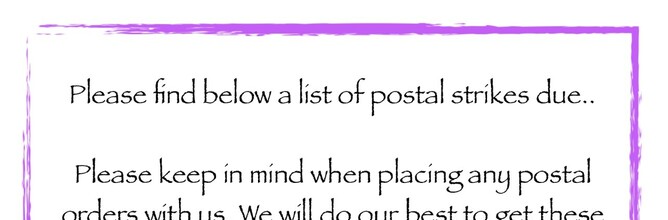 There are many postal strikes coming up - please keep in mind if placing any postal orders.Thank you!...