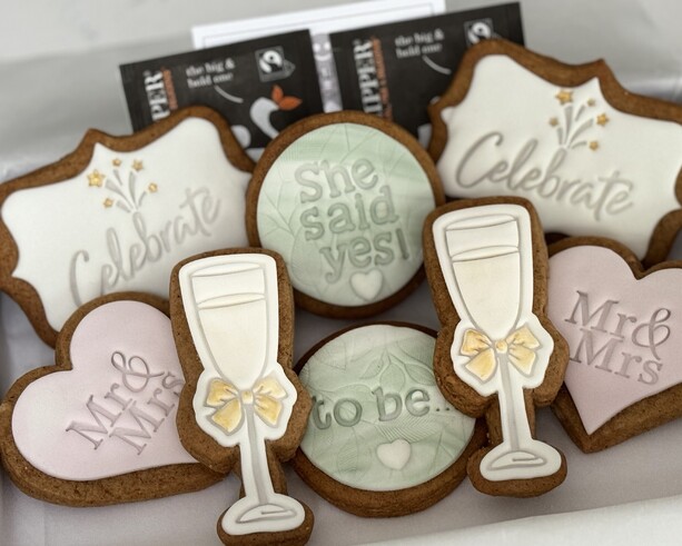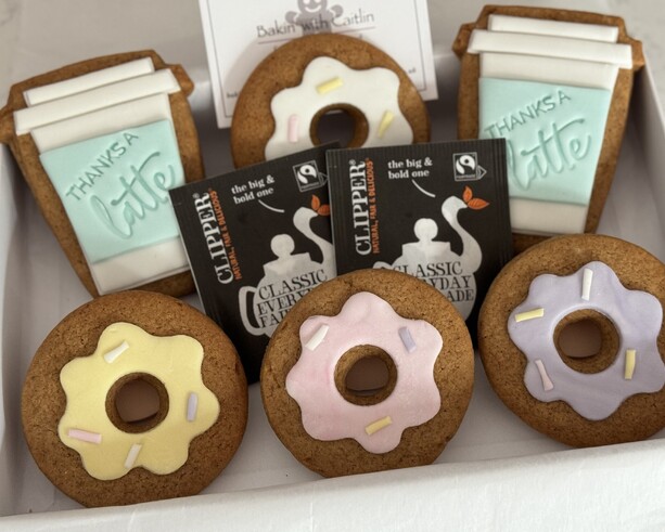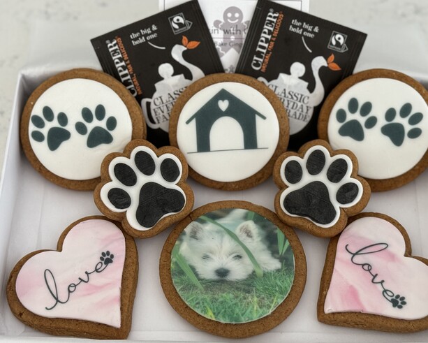 All biscuit sets are individually packaged, wrapped in tissue paper with 2 Clipper tea bags and are sent in our bespoke gift boxes.