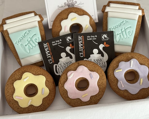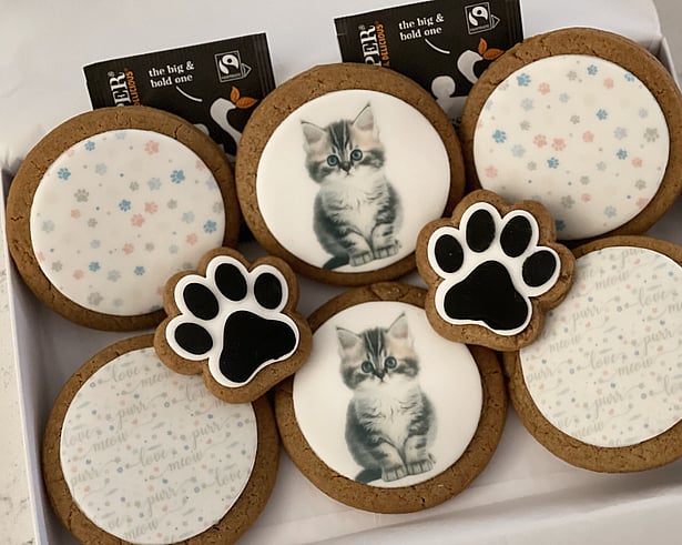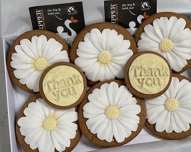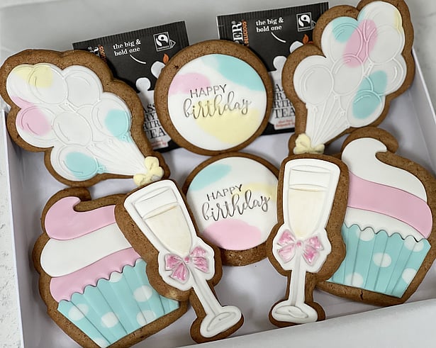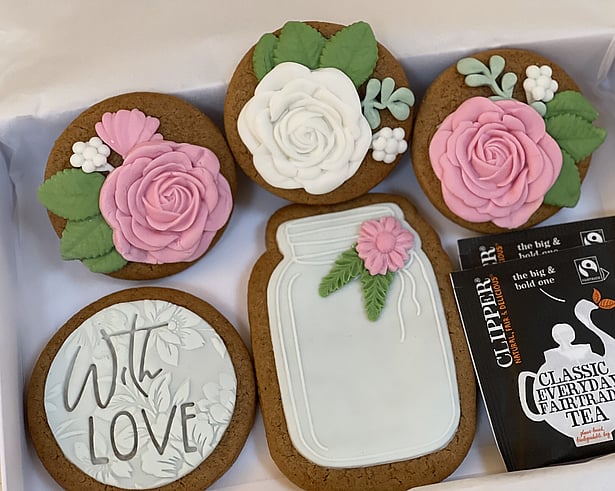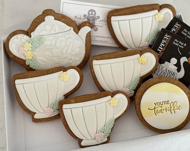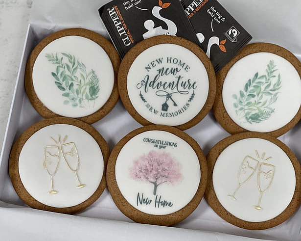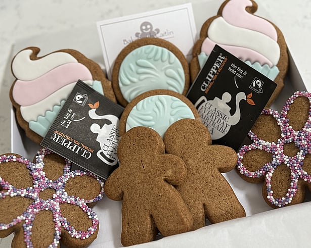 All biscuit sets are individually packaged, wrapped in tissue paper with 2 Clipper tea bags and put in a gift box.